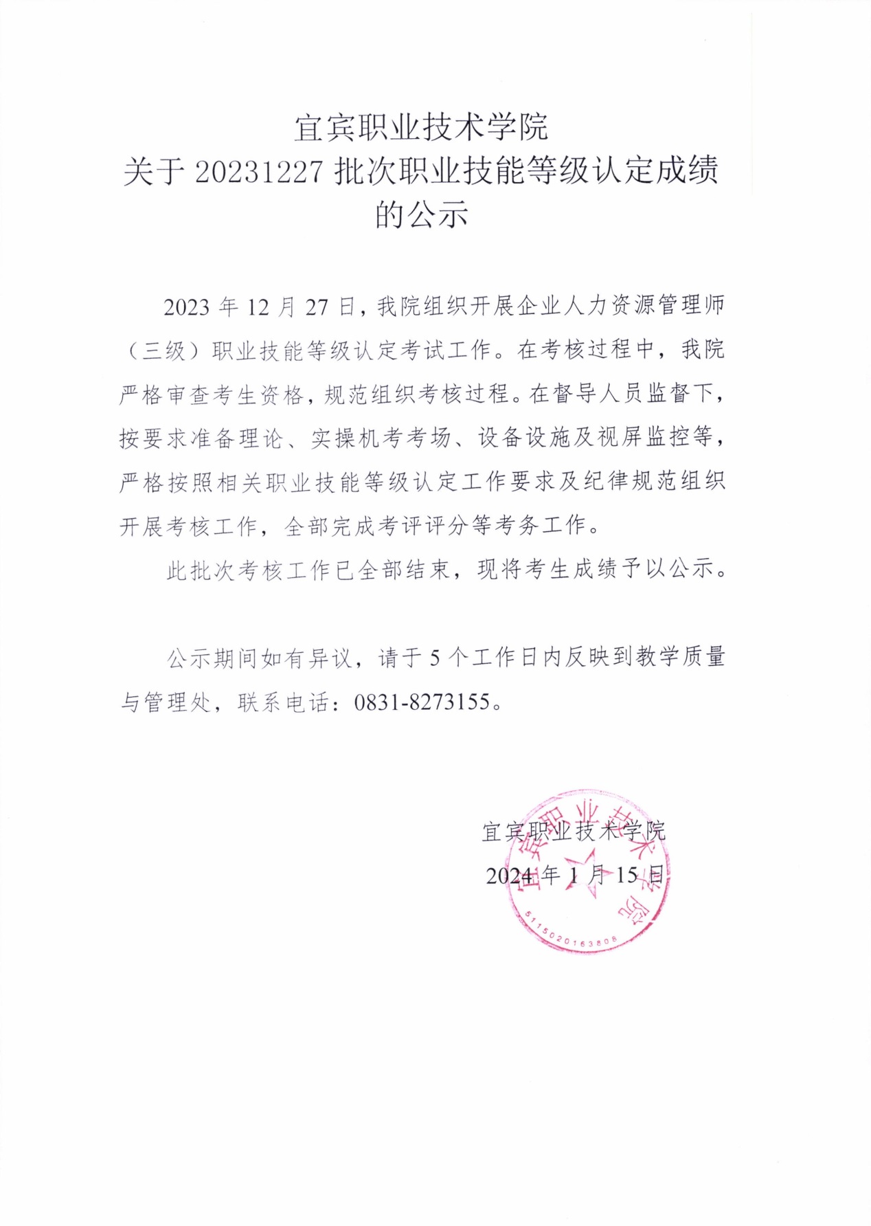 上一条:关于20240112批次职业技能等级认定成绩的公示 下一条:关于20231220批次职业技能等级认定成绩的公示