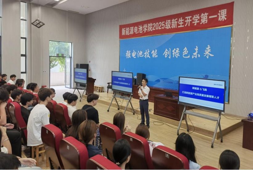 9月9日,宜宾职业技术学院新能源电池学院在燧火楼106阶梯教室隆重举行2025级新生开学第一课。学院党总支书记先元华教授、副院长陈泽华博士出席并授课,为新生带来了一场内容丰富、意义深远的入学教育课。