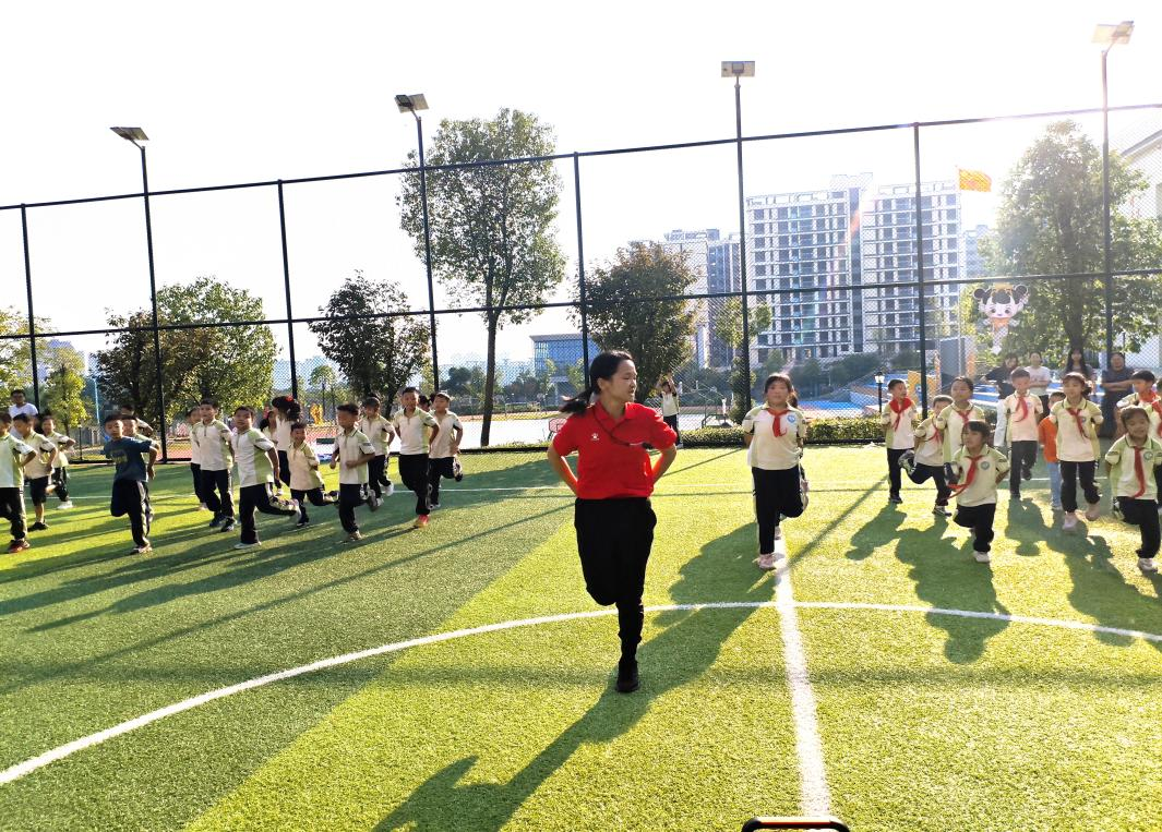 课程中,党团员志愿者分组带领小学生完成体适能训练,既有专业动作示范,又穿插红色小故事,让体育锻炼成为爱国主义教育的生动载体。