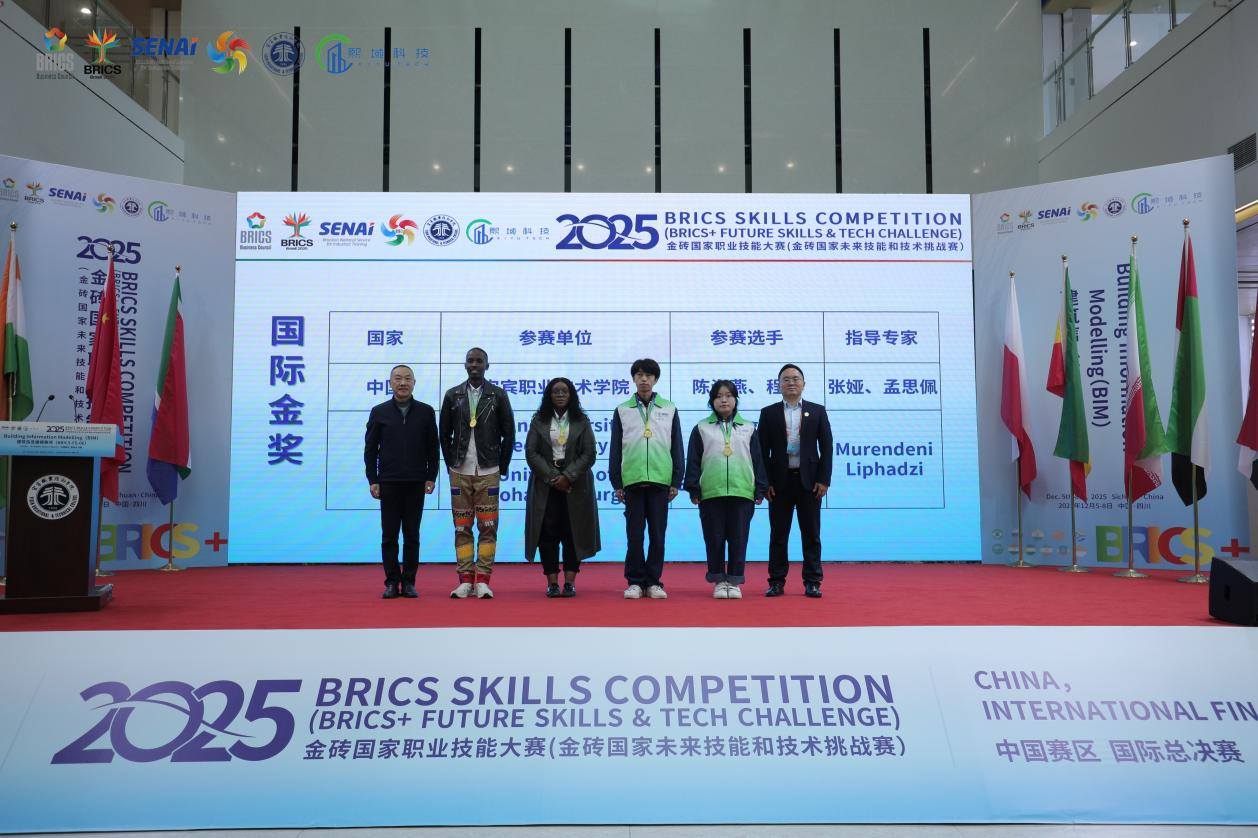 12月5日至8日,2025金砖国家职业技能大赛(金砖国家未来技能和技术挑战赛)建筑信息建模赛项国际总决赛在我校举办。建筑与环境学院选派的参赛代表队荣获该赛项国际总决赛一等奖与国际金奖两项最高荣誉。