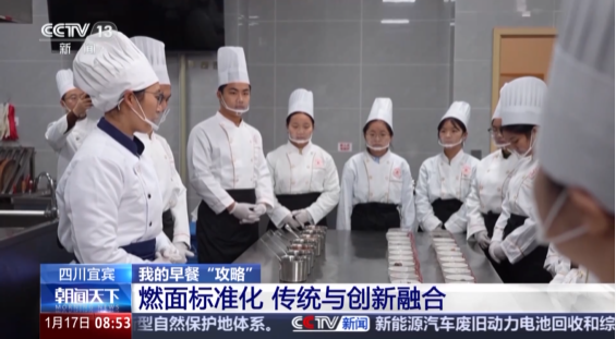1月17日,在央视《朝闻天下》专题报道《麻辣鲜香!一碗“燃”爆味蕾的面》中,央视记者深入探访了宜宾燃面从传统小吃到现代产业的转型之路,特别关注了我校宜宾燃面学院在人才培养和技艺传承方面的关键作用。