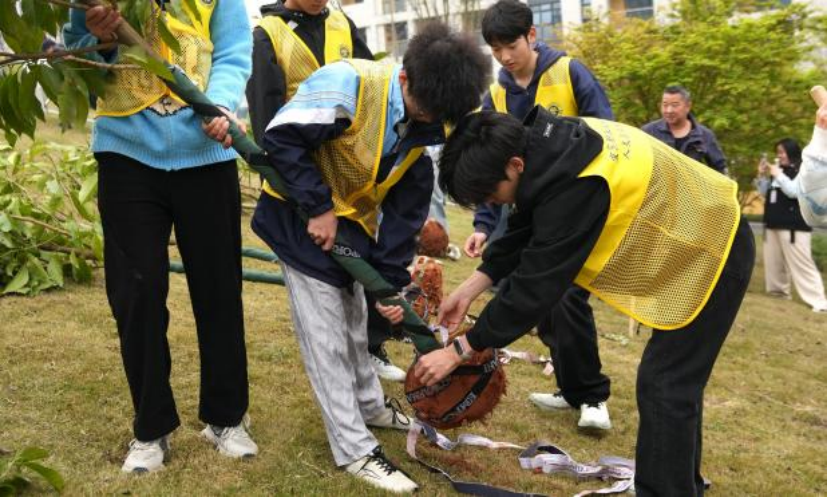 活动现场,人影穿梭,干劲十足。从学校领导到一线教师,再到青年学子,大家三五成群,默契配合。扶苗正干、培土夯实、提桶浇水,一道道工序有条不紊,一个个身影忙碌而专注。在劳动的汗水与欢声笑语中,大家心往一处想、劲往一处使,共同呵护着一株株新苗。这热火朝天的场景,不仅是劳动的画卷,更是宜职院人团结协作、同心同德的生动写照。