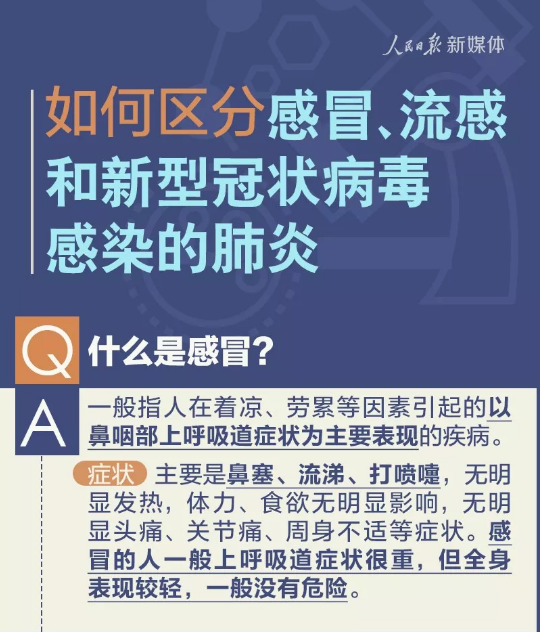 头痛、流鼻涕、咳嗽、喉咙痛怎么办?如何判断是否发热?如何区分感冒流感和新型冠状病毒感染的肺炎?一图了解↓↓↓