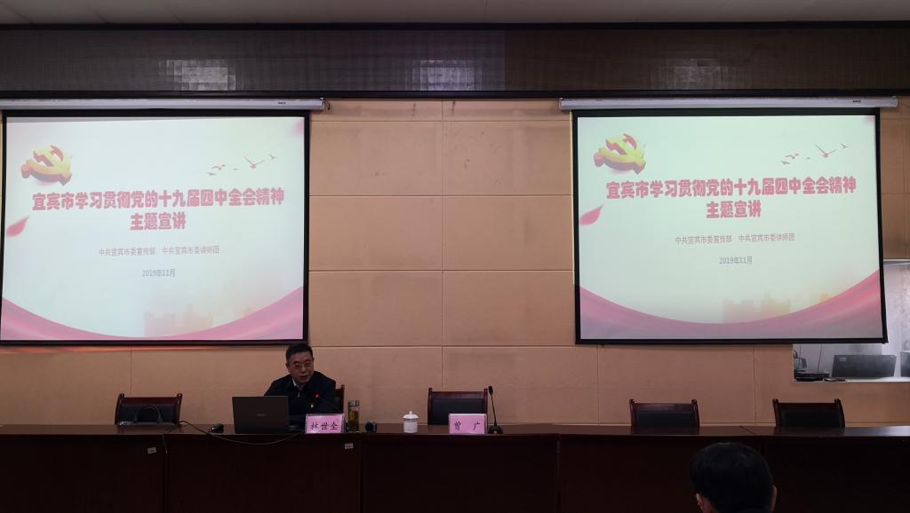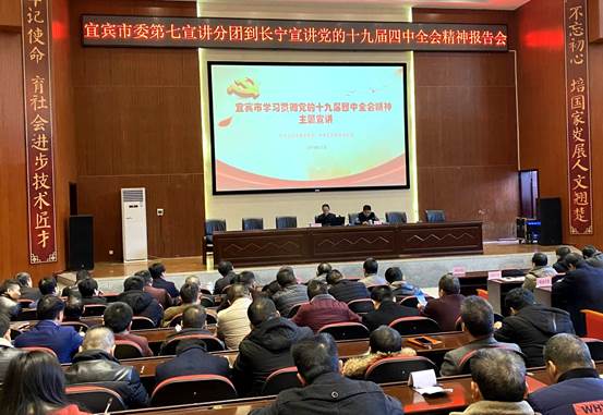 深入学习贯彻党的十九届四中全会精神是当前重要的政治任务,按照宜宾市委开展党的十九届四中全会精神宣讲工作部署,12月6日,我院党委书记林世全、院长伍小兵分赴江安、长宁宣讲十九届四中全会精神。