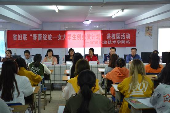 10月14日下午,四川省妇联“春蕾绽放—女大学生创业微计划”授牌暨开班培训在我院举行,出席本次活动人员有宜宾市妇女联合会副主席吴邦玉、四川省妇女联合会成都市电子商务协会副秘书长,春蕾计划负责人陈梓宇,非物质文化遗产的行业专家等。我院宣传部副部长刘吉梅,招生就业处副处长马庆及电子信息与控制工程系党总支书记陈效军参加了授牌仪式。