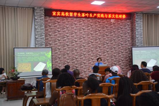 5月16日,四川轻化工大学留学生共160人到我院开展茶叶生产见习与茶文化研修,此次研修包括三部分内容,分别是中国茶文化、表演茶艺、参观茶叶工程技术中心。见习和交流活动首先由我院高级茶艺技师李丽霞老师向留学生介绍茶的源起及发现利用、茶叶品饮及制作的演变等中国茶饮品及茶文化的发展,然后由我院生物与化工工程系学生表演长嘴壶茶技和工夫茶茶艺《春之韵》,参加见习交流活动的留学生们认真聆听学习,茶艺表演更获得阵阵掌声。