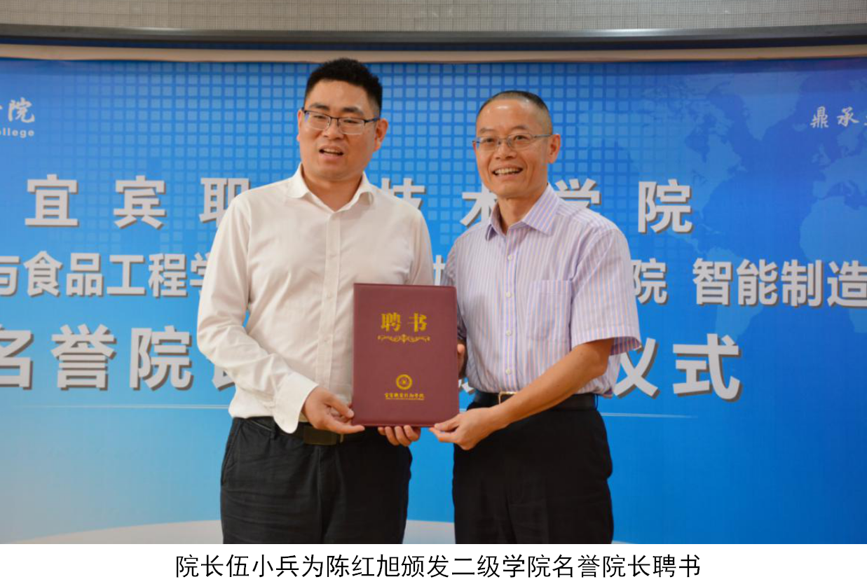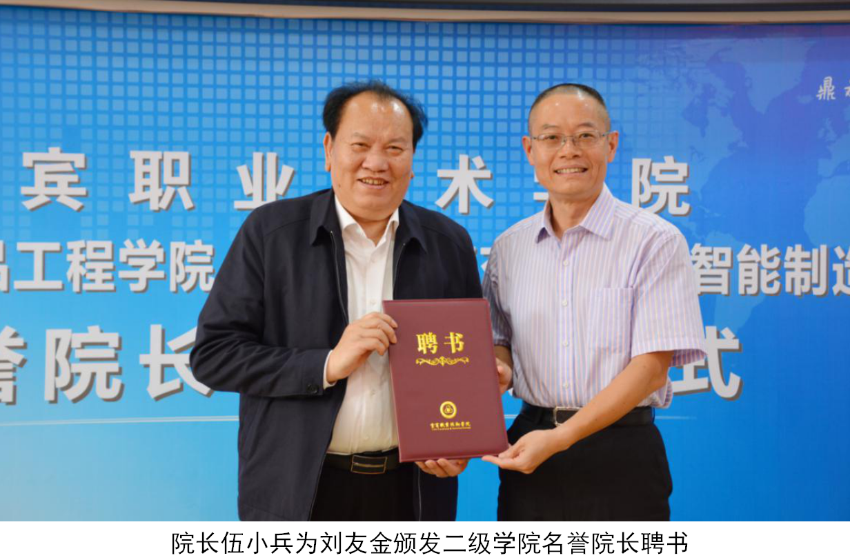 在大家的共同见证下,副院长张毅,资产经营管理公司董事长李俊强分别与宜宾市商业银行副行长杨兴旺共同签署战略合作协议。院长伍小兵为刘友金、陈红旭、蒋杰三位二级学院名誉院长颁发聘书。