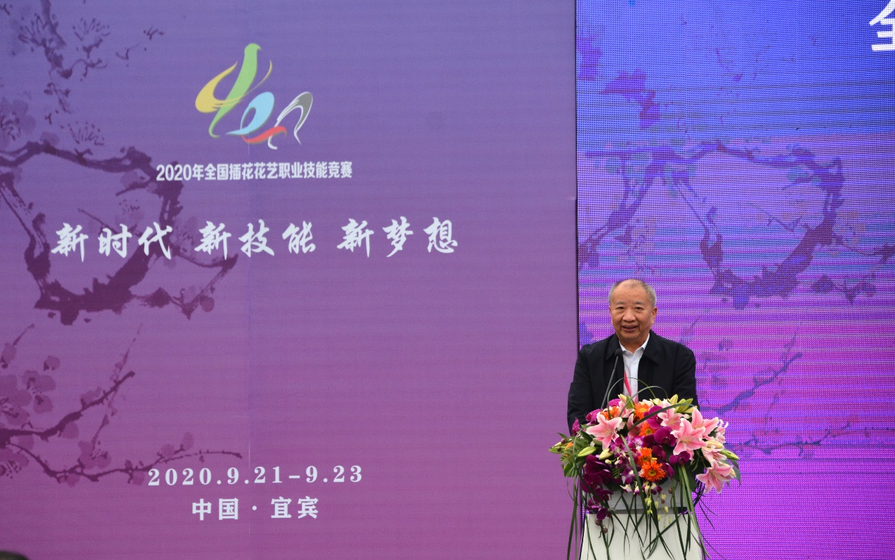 四川省花卉协会常务副会长刘照高介绍了四川花卉业的发展状况,并对繁荣插花花艺事业做了良好期许。中国插花花艺协会会长刘燕在讲话中强调了花艺事业与文化传承相结合对形成新时代下的中国文化自信的重要性,认为将中国插花对标世界大赛标准,宜宾职业技术学院作为首届全国插花花艺职业技能大赛首站,具有里程碑式的意义。
