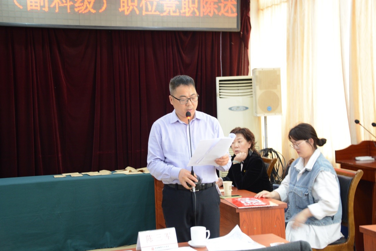 陈三军介绍本次竞职陈述会的目的、程序、规则和纪律要求。
