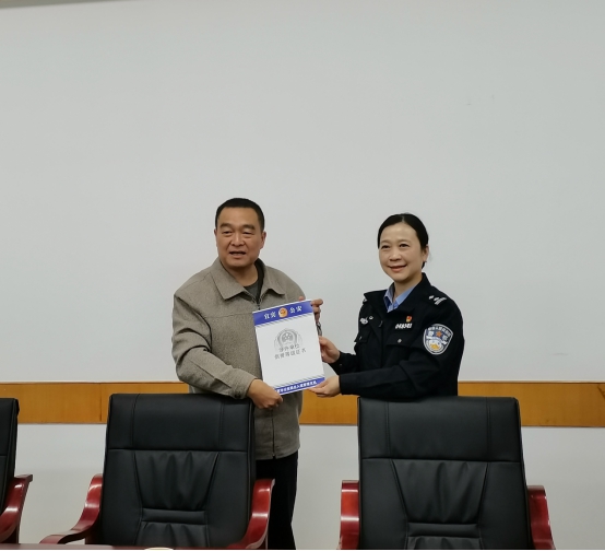 最后,文凌支队长为我院颁发涉外单位信誉等级证书。学院将会加强与宜宾市公安局出入境管理支队协作,进一步做好留学生招生培养和管理工作,合力打造平安校园。