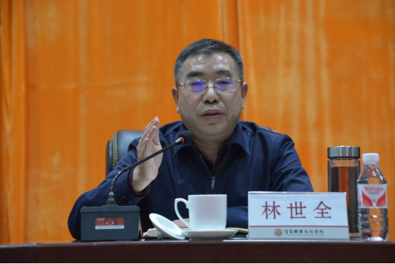 党委书记林世全作了重要讲话。他表示,学院高质量发展进入了新阶段,市第六次党代会对宜宾市未来的高质量发展进行了鸿篇布局,对我们学院未来的高质量发展提出了新要求,在学院成功立项四川省“双高”院校、创建国家“双高”院校、整体升格职教本科的重要关键期,全体干部同志在信仰上要坚定理想信念,在思想上要毫不松懈,在执行上要严守政治规矩,在能力上要高度适应新变革、新发展。