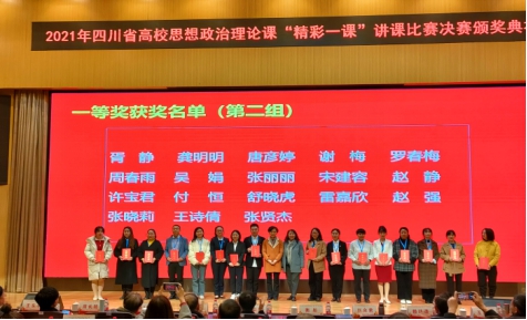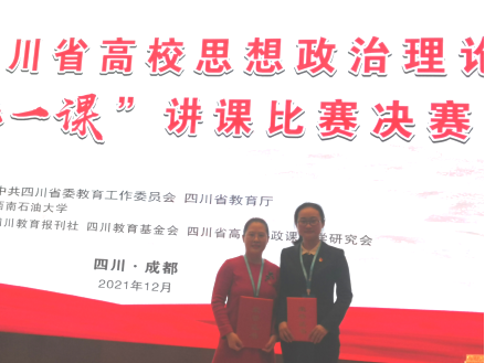 12月10日,2021年四川省高校思想政治理论课“精彩一课”讲课比赛决赛在西南石油大学举行,来自全省高校的133位思想政治理论课教师参加了决赛。通过激烈角逐,我院马克思主义学院青年教师龚小聪荣获《思想道德与法治》(高职组)决赛特等奖,张晓莉荣获《形势与政策》(高职组)决赛一等奖。