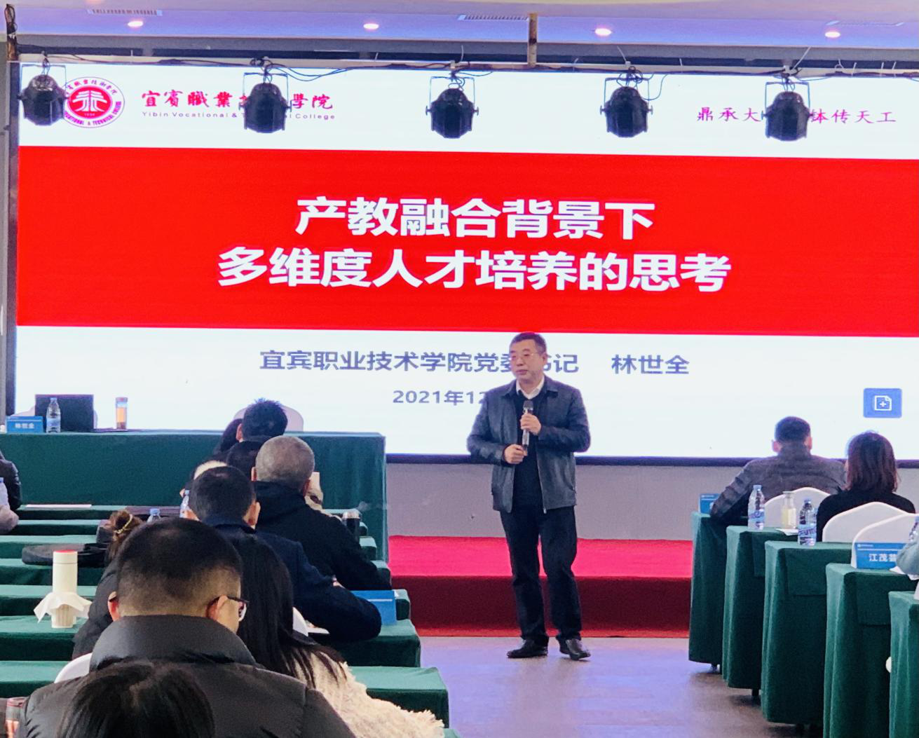 12月22日下午,学院党委书记林世全在宜宾佰鹭洲假日酒店三楼报告厅以《产教融合背景下多维度人才培养的思考》为题,为四川省高职高专第六期辅导员能力提升培训班全体参训学员作专题讲座。讲座由学院党委常委、副院长朱涛主持。