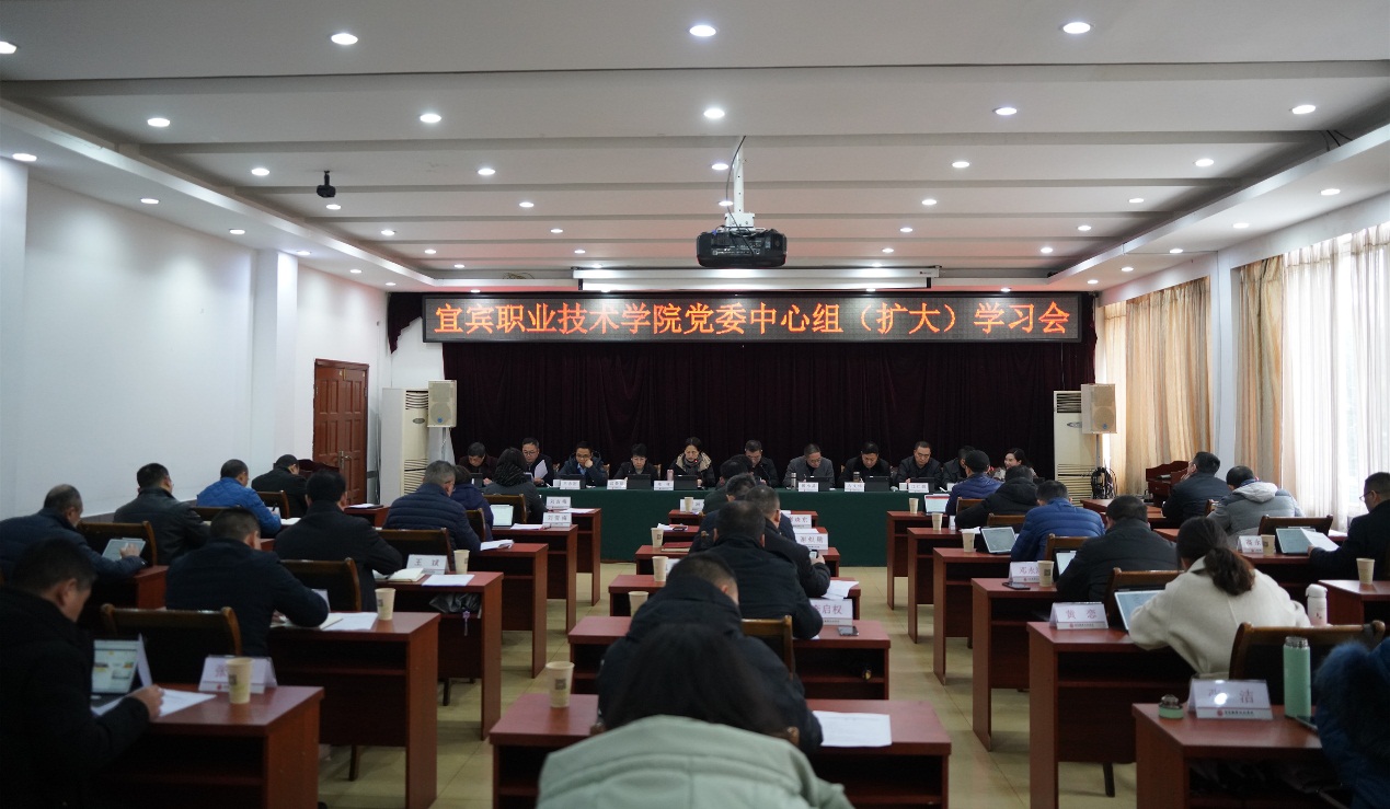 1月27日下午,宜宾职业技术学院党委中心组(扩大)学习会在科苑宾馆会议室召开,党委书记林世全主持会议。