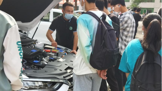 活动现场氛围热烈,吸引了众多学生驻足观看和体验,同学们在每辆车前,认真观察结构,积极地和志愿者们交流,了解汽车新科技、新技术、新理念,志愿服务的学生也认真的解答,做好宣讲。