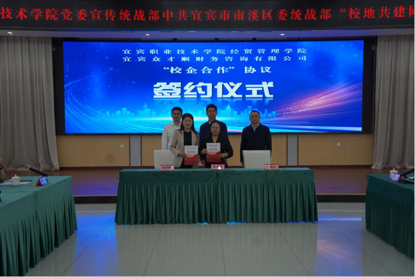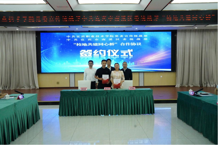 为深化校地统战合作,构建校地统战发展共同体,推动新时代统战工作高质量发展,4月13日下午,学院党委宣传统战部与南溪区委统战部在南溪区会议中心隆重举行校地共建“同心桥”签约仪式。宜宾市委统战部副部长、市侨联党组书记刘万明,学院党委常委、副院长朱涛,南溪区委常委、统战部部长、区政协党组副书记王财波出席签约仪式并讲话。