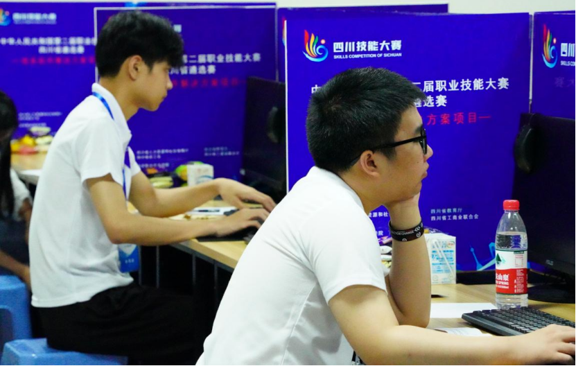 本次大赛由四川省人力资源和社会保障厅主办、宜宾职业技术学院承办。“商务软件解决方案”赛项围绕桌面应用程序开发和移动应用程序开发两个模块展开激烈竞争,我院参赛选手与来自泸州职业技术学院、成都工贸职业技术学院、四川工商职业技术学院、四川职业技术学院等10支代表队同台竞技,最终经过连续6小时的奋力拼搏,获得此次遴选赛第一名。