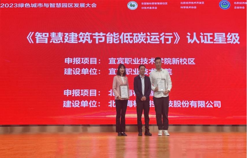 10月19日下午,2023绿色城市与智慧园区发展大会在森特士兴集团股份有限公司多功能厅顺利召开。会上,宣布并授牌了第一批获得《智慧建筑节能低碳运行》认证的项目。宜宾职业技术学院新校区项目被认证为《智慧建筑节能低碳运行》二星级项目。
