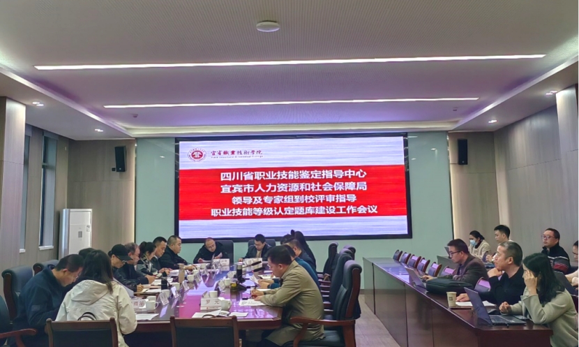 为全面推进技能人才评价工作,提高评价工作质量,服务高技能人才培养,11月25日,四川省职业技能鉴定指导中心、宜宾市人力资源和社会保障局领导及专家来校调研、评审和指导学院技能人才评价工作,学院党委常委、副院长朱涛出席座谈会并陪同调研。