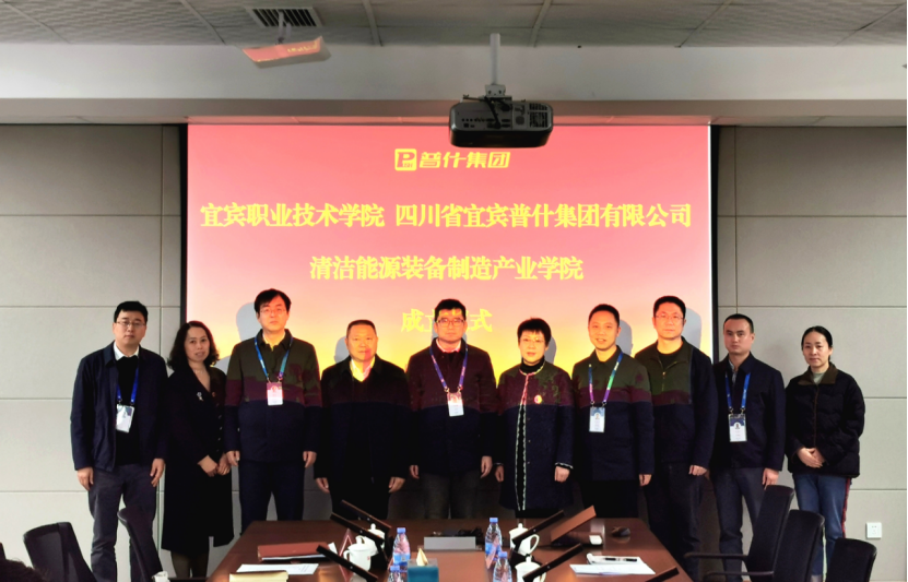当前,宜宾市紧抓四川推动绿色低碳优势产业高质量发展的重大机遇,构建以新型工业化为主导的现代产业体系,奋力打造国家产教融合示范城市、西部地区重要的清洁能源基地。为应对产业发展和职业教育改革趋势,着力解决产业竞争日趋激烈、技术创新驱动不足、人才结构供需失衡等现实难题,作为宜宾市职业教育和国有企业的中坚力量,宜宾职院与普什集团联合组建了“清洁能源装备智能制造产学研综合平台”,并成功立项为四川省第二批产教融合示范项目。“清洁能源装备制造产业学院”的成立正是该示范项目体制机制创新的重要举措。