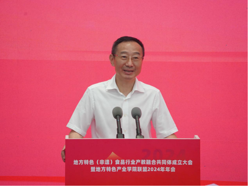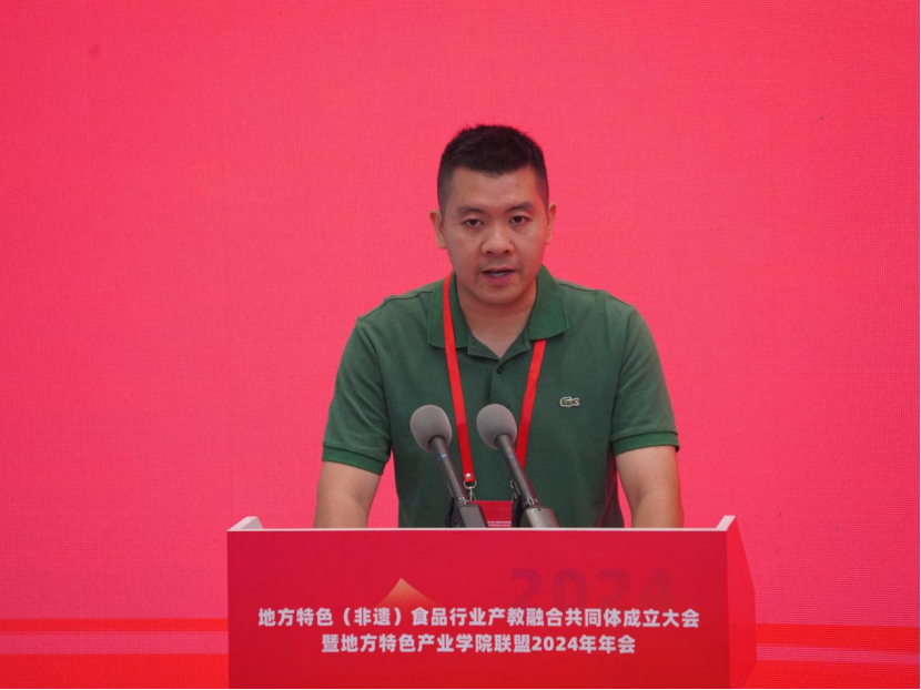 学院党委副书记徐劲松在致辞中表示,成立地方特色(非遗)食品行业产教融合共同体,旨在贯彻落实习近平总书记关于产教融合、校企合作及非遗保护和食品行业发展的论述,推动其向更深层次、更广领域发展,培养高素质技术技能人才,为地方食品行业繁荣提供人才和智力支持。他说,在此合作中,各牵头单位应积极探索行业标准、企业标准与教学标准相融合的地方特色(非遗)食品行业人才培养模式,加快培养高层次技术技能人才,满足行业发展需求。同时,建议联合打造科研攻关团队,建立协同创新机制,围绕地方特色食品行业技术难题及前瞻性需求,深入研究食品科学与工程、生物技术等关键技术。这样的合作不仅能推动技术创新,还能服务企业,为地方特色食品行业提供技术支撑和人才保障。