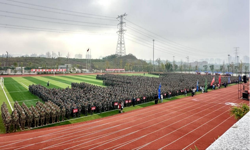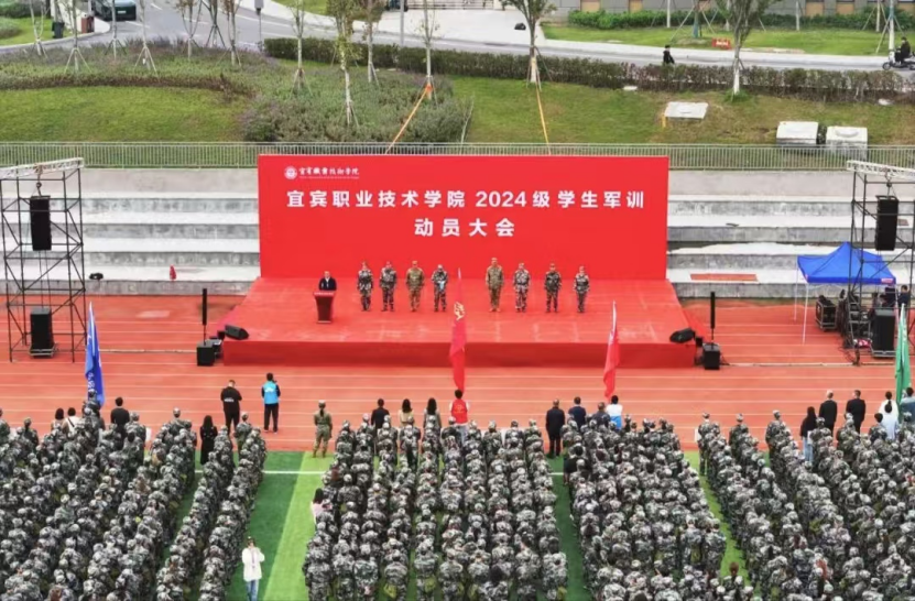 灼灼青春,铸就钢铁意志;巍巍英姿,彰显军人本色。为切实加强国防教育,培养青年大学生国防意识,厚植爱国情怀,锤炼意志品质,10月14日9时,我院2024级新生军训动员大会在足球场隆重举行。南溪区武装部军事科参谋陈宏联、黄玖彬,学院党委书记林世全,党委常委、副院长江仁朝,党委常委、副院长朱涛,党委常委、纪委书记熊中海,党委常委、宣传统战部部长叶茜,党委常委、组织部部长陈敏出席动员大会。党委副书记徐劲松主持动员大会。