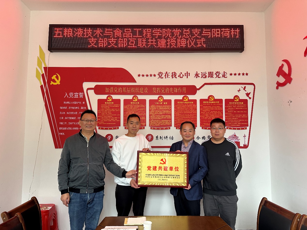 会上还进行了我院五粮液技术与食品工程学院党总支与阳荷村党支部互联共建授牌仪式。