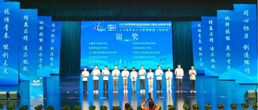 8月29日,2025年世界职业院校技能大赛总决赛争夺赛“土木建筑设计与管理”赛道(高职组)在甘肃交通职业技术学院圆满落幕。我校代表队与来自全国183支参赛队伍、715名顶尖选手同台竞技,凭借卓越的专业技能与出色的团队协作,勇夺银奖,创造了学校在该赛道的历史最佳成绩。