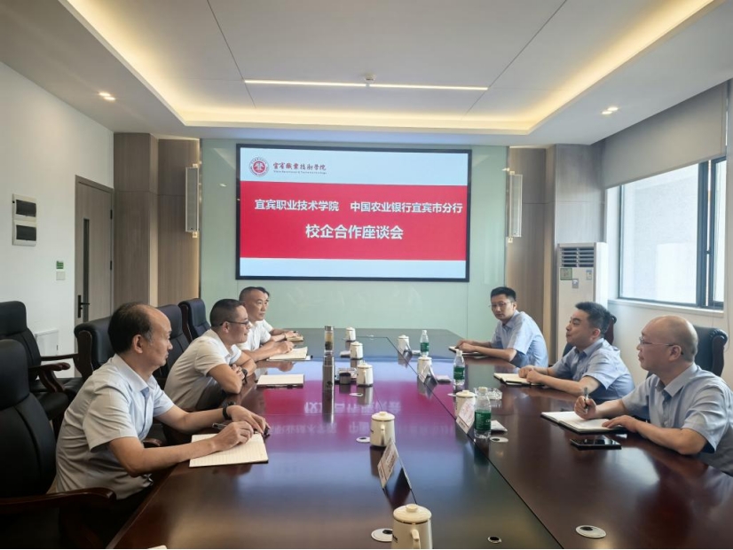 9月3日下午,中国农业银行宜宾分行党委书记、行长郭燠霖一行到我校开展校企深度合作座谈。学校党委书记伍小兵,党委常委、党政办主任、学工部部长郭正富,中国农业银行宜宾分行机构业务部总经理杨智、南溪支行行长刘宇出席会议。