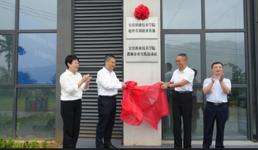 张林对出席揭牌活动的领导和来宾表示热烈欢迎。他指出,近年来,江安县积极抢抓新能源产业发展机遇,全面融入宜宾市“1+N”动力电池产业链生态圈。此次共建“宜宾职业技术学院校外实训就业基地”“宜宾职业技术学院教师企业实践流动站”“四川江安经济开发区人才培养基地”,标志着校地合作迈入优势互补、资源共享的新阶段,这既是深化“产教融合、校地合作”的生动实践,更是实现当前D级化工园区创建的最优路径,绘就未来战略发展蓝图的关键一步。