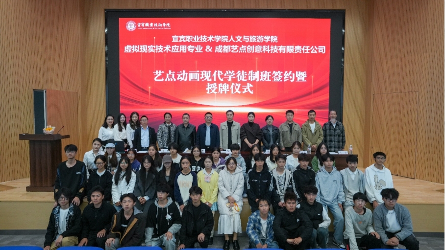 11月7日,我校人文与旅游学院与成都艺点创意科技有限责任公司(以下简称“艺点动画”)在厚德楼报告厅举行现代学徒制合作协议签约仪式。双方将在虚拟现实技术应用专业领域开展深度合作,共同探索“现代学徒制”人才培养新模式,为元宇宙、数字文旅等新兴产业输送高技能人才。
