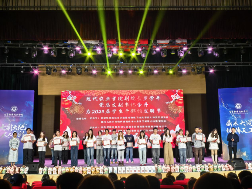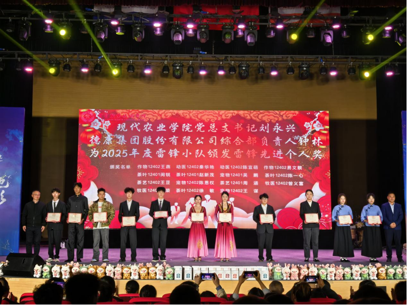 晚会上,现代农业学院对斩获省市级及以上奖项的同学、学雷锋先进个人予以表彰,树立榜样标杆。同时,学生干部集体亮相,进一步凝聚起学院发展的合力与正能量。互动抽奖环节,妙趣横生,师生共同参与到了有趣的游戏活动中。