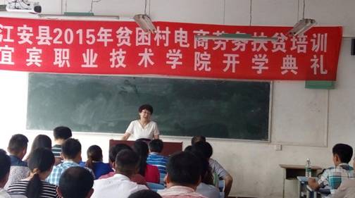 6月17日星期三下午3点,在宜宾职业技术学院科苑宾馆三楼会议室,举办了“江安县2015年劳务扶贫培训宜宾职业技术学院电商班结业座谈会”。在座谈会中首先是培训小组代表发言,培训代表表达了对本次培训给予支持的江安县政府以及学院表示真诚的谢意,并表示本次培训让他们对电子商务有了一个全新的认识,大大的增强了他们利用现代化技术开展农业经济活动的信心,也让他们对改造农村经济,提高农村收入带动全村农民集体致富有了新的想法。
