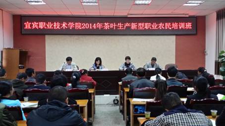 2014年10月15日,由宜宾职业技术学院承办的2014年高县新型职业农民培育工程茶叶专业培训班在高县县委党校正式开班,共有来自高县文江、罗场等茶叶主产乡镇的种茶大户和专合组织50名学员参加了培训,我院副院长闫景丽、高县农业局副局长李晓玲等领导出席了开班仪式。