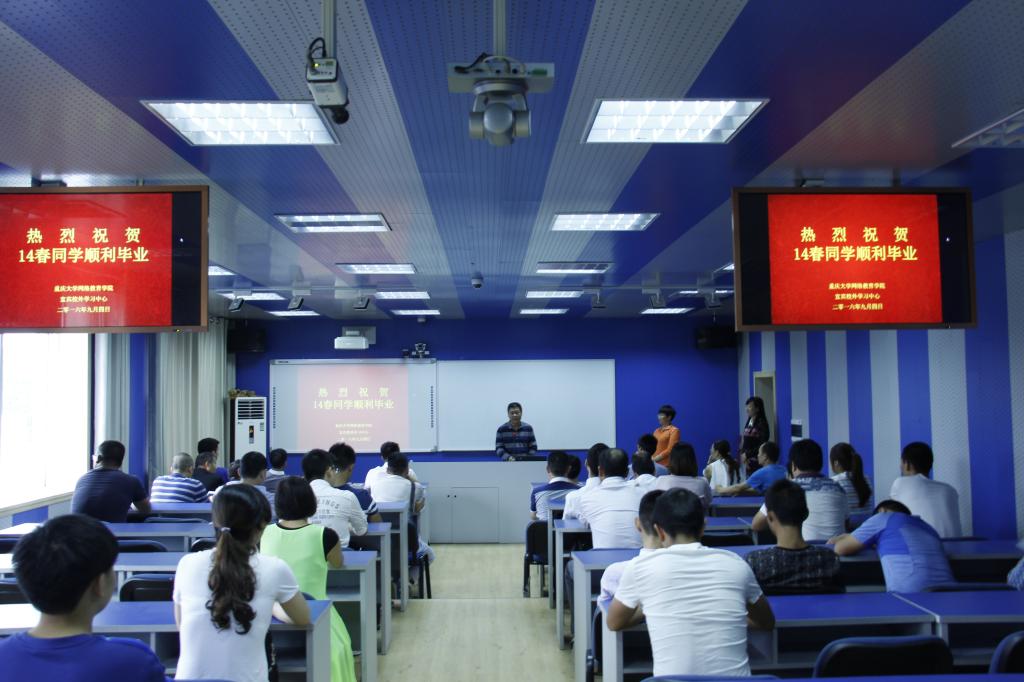 宜宾职业技术学院学习中心进行了2016年秋季毕业典礼。由中心张秀英老师主持,宜宾职业技术学院继续教育部李德立副主任、林伟副主任和部门老师、14春毕业学员参加。