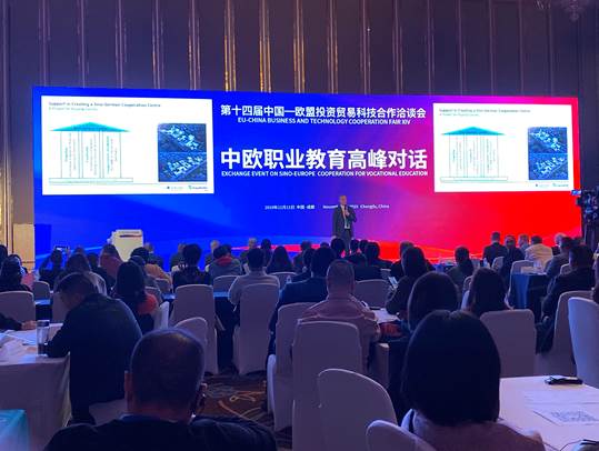 11月11日下午,学院副院长周黎军带队参加 “第十四届中国-欧盟投资贸易科技合作洽谈会”(中欧职业教育高峰对话),电控系数字媒体艺术专业曹芳等教师、学生代表随行。此次会议主要为中国和欧洲国家(包括德国、法国、瑞士等)的职业院校在教学、培训与留学等方面的合作搭建对接平台。