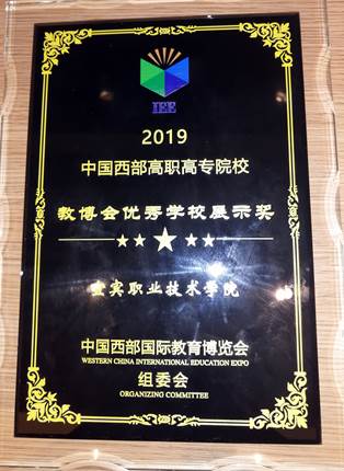 学院被中国西部国际教育博览会组委会授予“2019中国西部高职高专院校教博会优秀学校展示”奖。通过参加此次教博会,展示了学院办学特色与成效,进一步扩大了学院的影响力。
