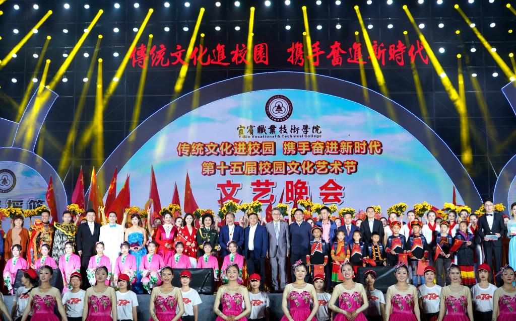 本次晚会由学院党委书记林世全主持。全国高职高专党委书记论坛主任委员会副主任、全国高职高专思政课建设联盟副会长、四川交通职业技术学院党委书记王东平,宜宾市政府副秘书长张健,宜宾市委宣传部常务副部长高一川,宜宾市委人才工作局局长何春林,宜宾市双城服务局局长陈元华,四川蜀南文旅集团副总经理、合作传媒有限公司董事长李建章,宜宾电视台副台长陈涌,宜宾新闻网总编辑袁显银,宜宾市文广局赵华等出席本次晚会。在晚会开始之前,学院院长伍小兵向老艺术家颁发了“传统文化进校园特聘教授”聘书。