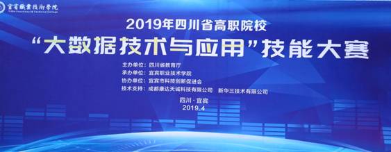 4月27日,由四川省教育厅主办、宜宾职业技术学院承办,杭州新华三技术有限公司、成都康达天诚科技有限公司提供技术支持的2019年四川省高职院校大学生“大数据技术与应用”技能大赛在我院隆重举行,来自全省高职院校的16支队伍共48名学生参加了大赛。